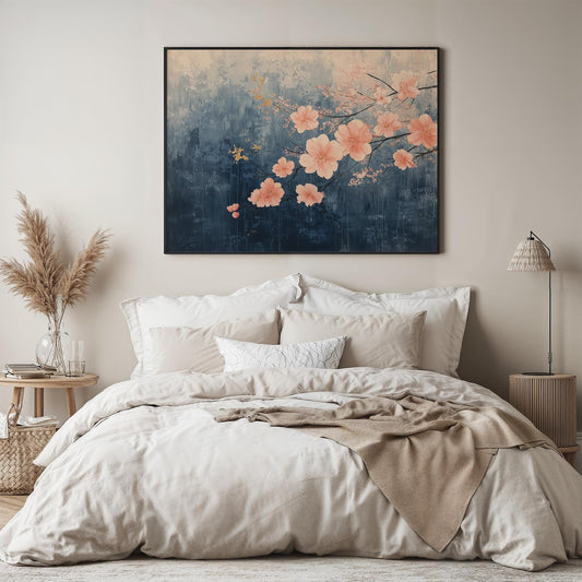 Cherry Blossom Whispers Japanese Abstract Oil Painting Style Modern Art Wall Decor Poster Print