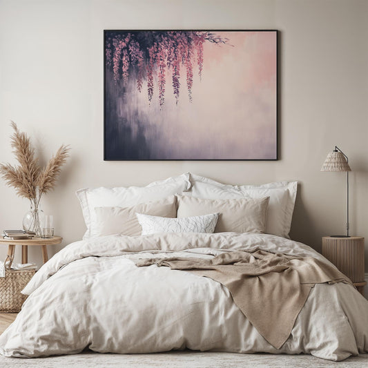 Wisteria Twilight Japanese Abstract Oil Painting Effect Poster Print Elegant Floral Wall Art Decor
