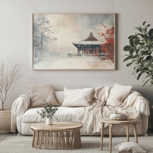 Silent Snowfall Japanese Abstract Oil Painting Effect Poster Print Winter Serenity Wall Art Decor