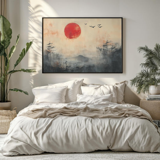 Japanese Abstract Oil Painting Style Poster Print Rising Sun Serenade Minimalist Art Decor