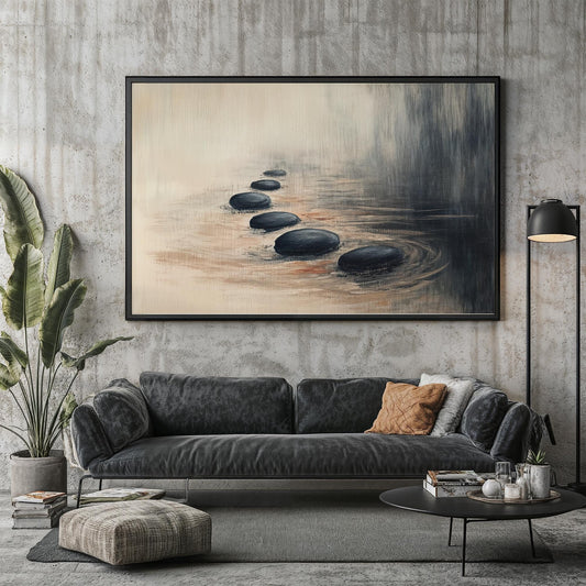 Zen Garden Reflections Japanese Abstract Oil Painting Style Poster Print Tranquil Art Wall Decor