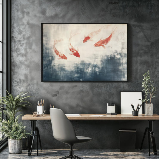 Crimson Koi Dance Japanese Abstract Oil Painting Effect Poster Print Vibrant Fish Wall Decor Art