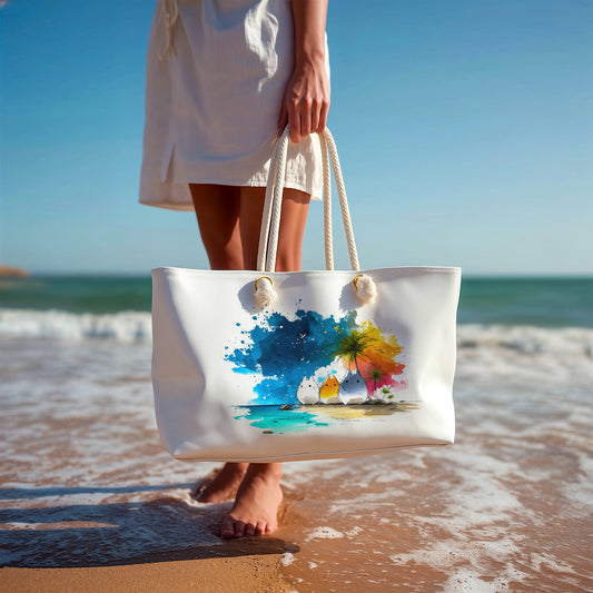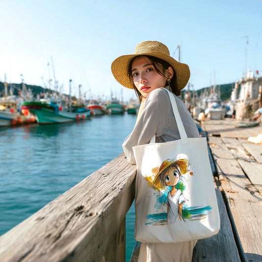 Anime Beach Tote Bag, Kawaii Watercolor Ink Sketch Canvas Bag, Coastal Summer Tote, Gift for Anime Fans