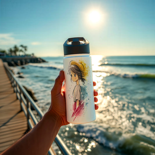 Anime Girl Water Bottle Stainless Steel Flask | Kawaii Seaside Travel Bottle | 12oz 18oz 32oz Insulated | Perfect Gift for Anime Fans