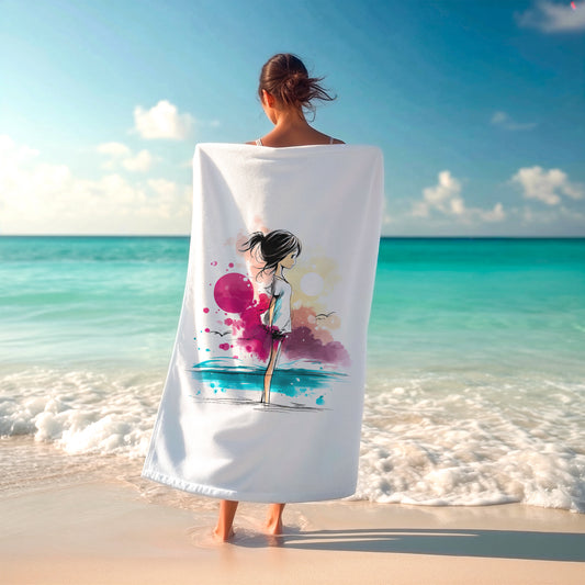 Anime Watercolor Beach Towel, Kawaii Ink Sketch Bath Sheet, Manga Coastal Towel, Gift for Anime Lovers