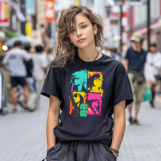 Anime Graphic T Shirt for Teens, Color Pop Japanese Streetwear Tee, Kawaii Cool Shirt for Girls or Boys, Great Gift for Anime Fans