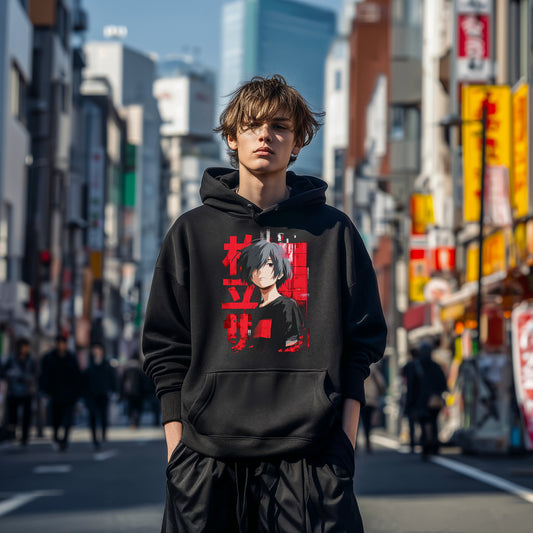 Anime Hoodie for Teens, Japanese Streetwear Hoodie Front Print, Cool Manga Character Sweatshirt, Unique Gift for Anime Fans