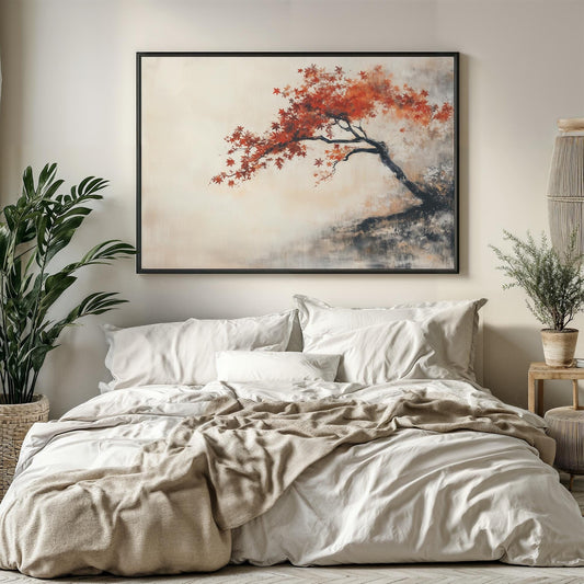 Autumn Haze Japanese Abstract Oil Painting Effect Poster Print Vibrant Maple Tree Wall Art Decor