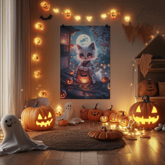 Anime Bakeneko Rolled Posters Japanese Cat Spirit Wall Art Halloween Yokai Illustration Kawaii Manga Poster Spooky Cute Room Decor