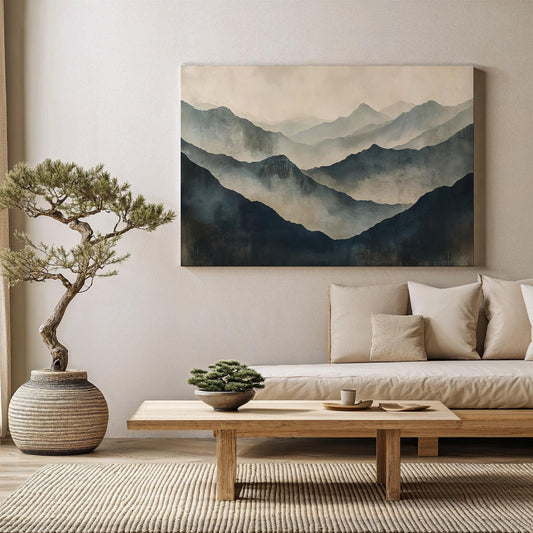 Abstract Mountain Canvas Art, Minimalist Japanese Landscape Print, Calming Wall Decor, Perfect Gift for Nature Lovers, Tranquility Seekers