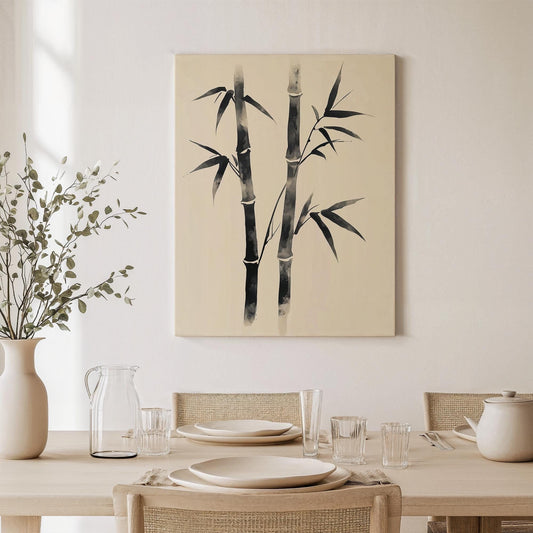 Bamboo Shadows Canvas Art, Minimalist Japanese Painting Effect, Elegant Nature Decor, Perfect Gift for Mindful Living Spaces