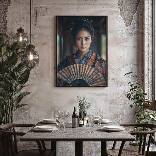 Edo-Era Princess with Folding Fan Traditional Wall Art Japanese Portrait Poster Print
