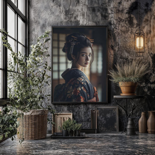Edo-Era Courtesan in Floral Kimono Wall Art Traditional Japanese Portrait Poster Print Decor