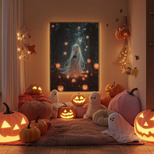 Fluffy Yurei Ghost Japanese Anime Poster Kawaii Halloween Decor
