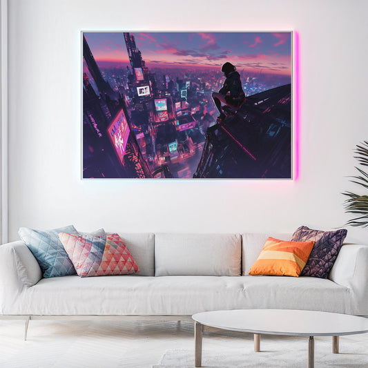 Cyberpunk Skyline Poster, Retro Anime Cityscape Art, Futuristic 80s-90s Sci-Fi Wall Decor, Great Gift for Anime, Sci-Fi Fans and Gamers