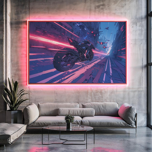 Cyberpunk Motorcycle Chase Poster, Futuristic Anime Wall Art, High-Speed Sci-Fi Decor, Perfect Gift for Anime and Action Fans, Gamers