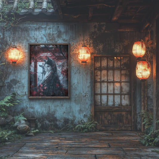 Geisha Cat Secret Japanese-Inspired Elegant Kids Room Decor Kawaii Wall Art