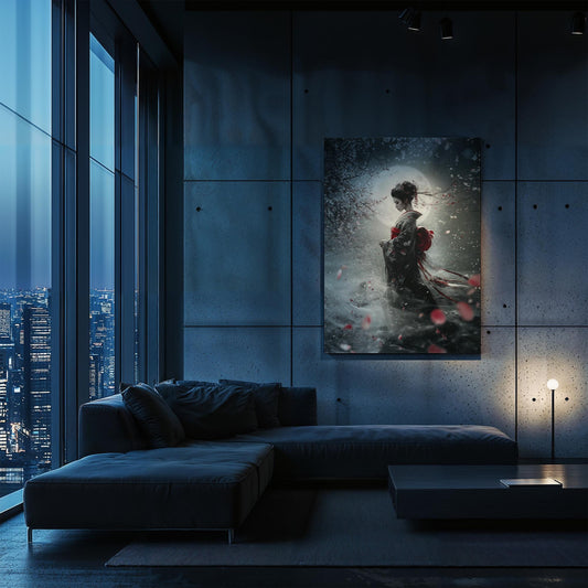 Geisha in Cherry Blossom Garden Traditional Japanese Sakura Wall Art Portrait Poster Print
