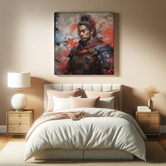 Samurai Warrior Autumn Maple Canvas Print, Feudal Japan Traditional Art Decor, Historical Japanese Warrior Wall Art, Ephemeral Maple Leaves