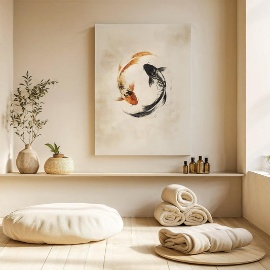 Koi Fish Yin Yang Canvas Art, Zen Minimalist Painting, Elegant Balance Decor, Perfect Gift for Harmony and Tranquility