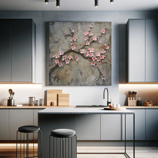 Cherry Blossom Wall Art, Textured Sakura Branch Canvas Print, Floral Home Decor, Pink Flower Artwork