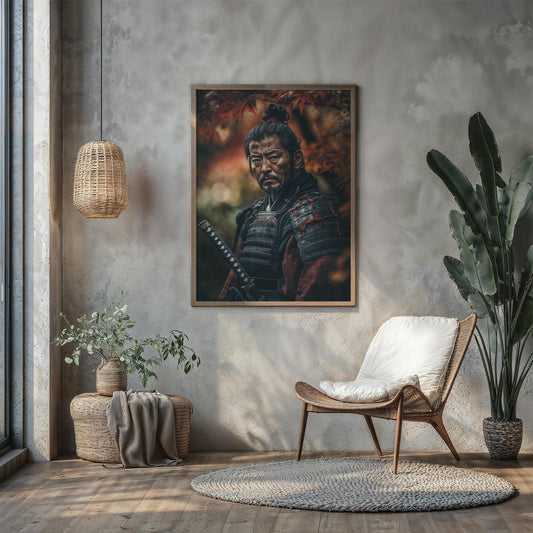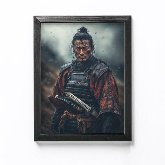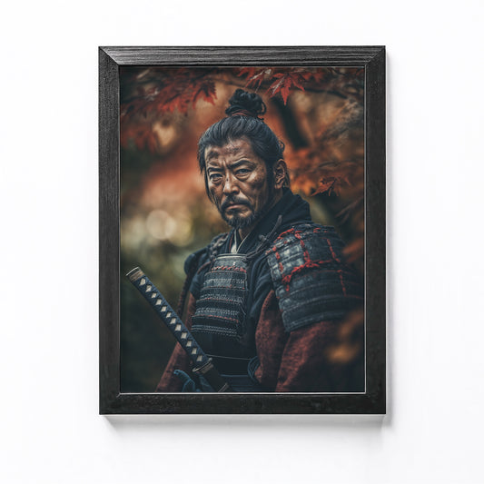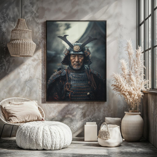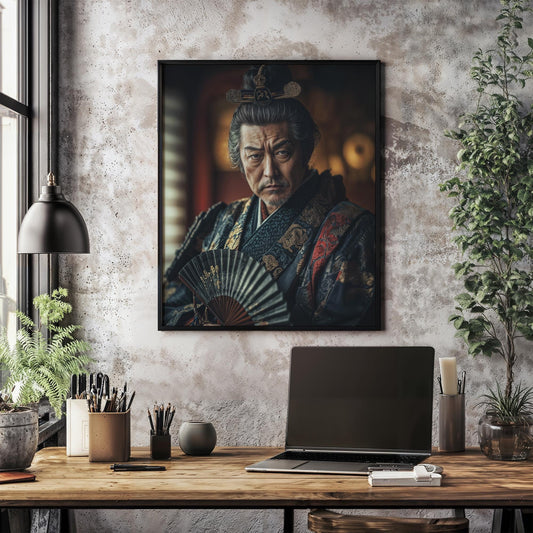 Stoic Samurai Warrior Portrait - Majestic Japanese Shogun Poster Print