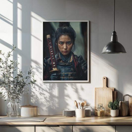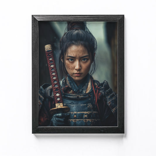 Female Samurai with Katana Wall Art Japanese Warrior Portrait Poster Print