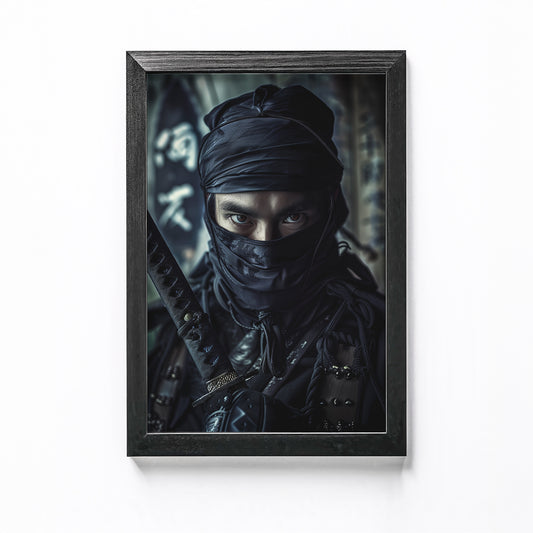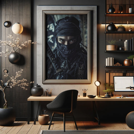 Shadowed Ninja Warrior Portrait - Enigmatic Japanese Fighter Wall Art Print