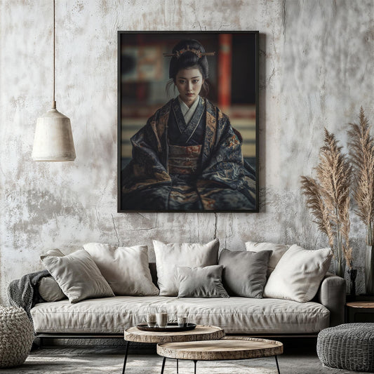 Fearless Samurai Woman Japanese Warrior Wall Art Portrait Poster Print Decor
