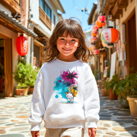 Kids Kawaii Beach Sweatshirt, Anime Watercolor Ink Sketch Pullover, Manga Style Children Top, Gift for Anime Fans