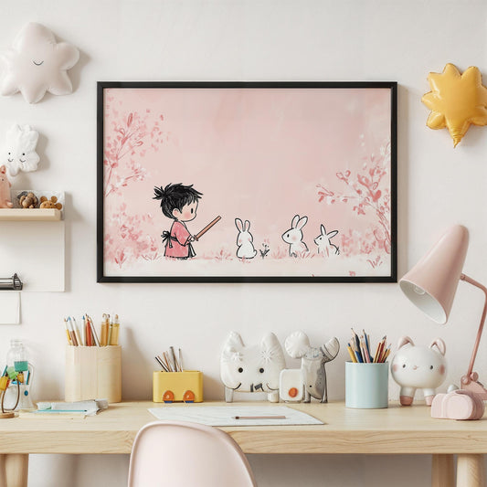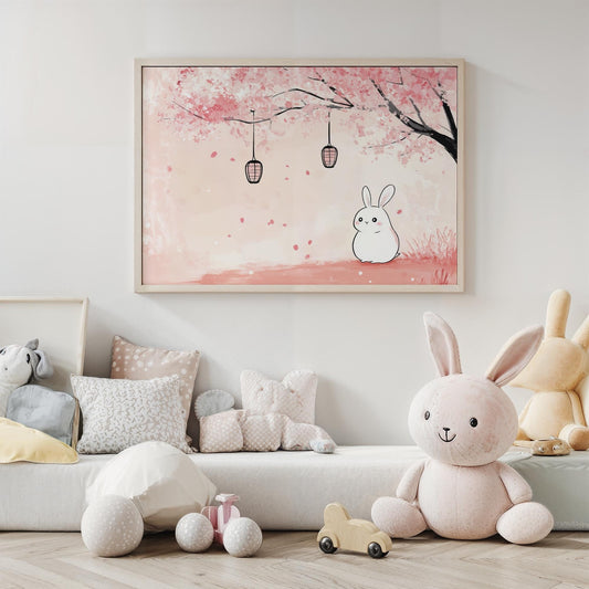 Sakura Kawaii Bunny Adventure Japanese Inspired Kids Room Decor Wall Art