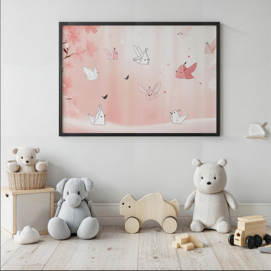 Origami Dreams Japanese-Inspired Whimsical Kawaii Kids Room Wall Art