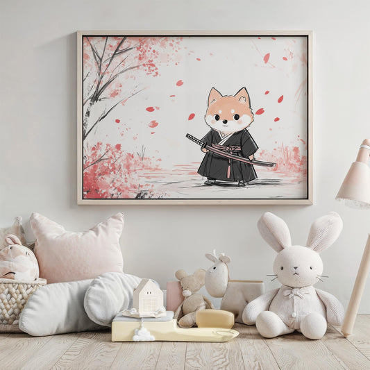 The Shiba Samurai Brave Japanese-Inspired Kids Room Kawaii Wall Art