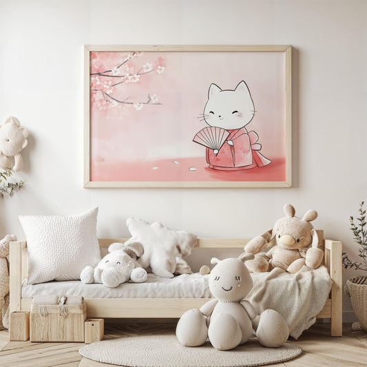 Geisha Cat Secret Japanese-Inspired Elegant Kids Room Decor Kawaii Wall Art