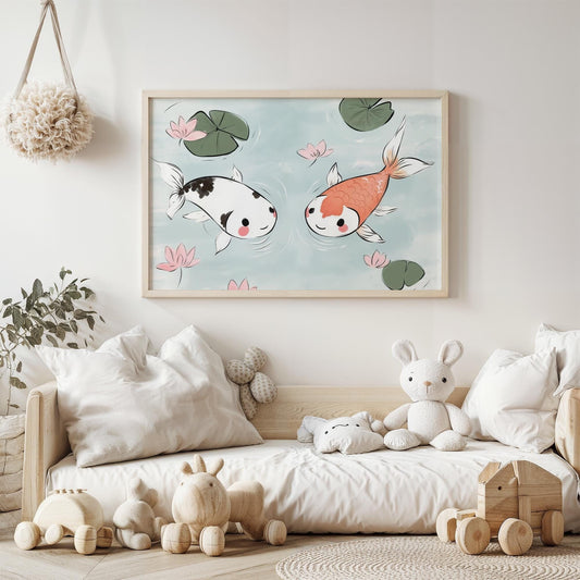Kawaii Koi Fish Adventure Vibrant Japanese-Inspired Kids Room Wall Art
