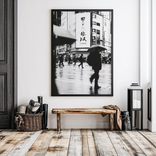 Vintage Japanese Street Photography Style Poster Print Retro Black and White Urban Wall Art Shibuya Crossing Tokyo
