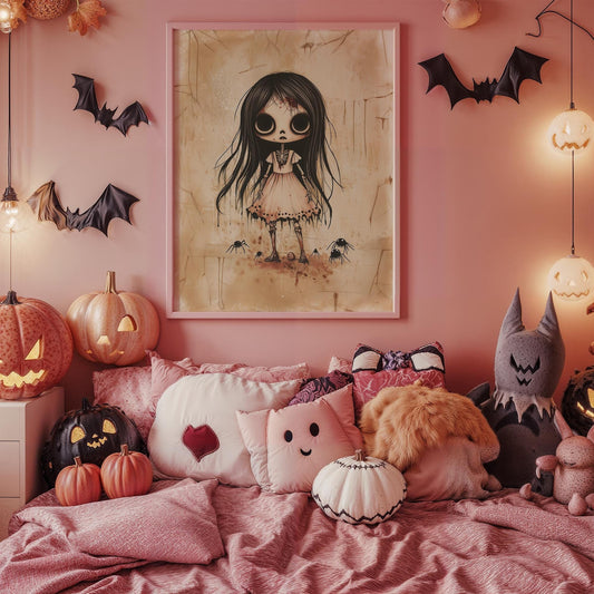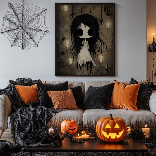 Kawaii Halloween Poster Print Haunted Ghost Girl Spooky Creepy Cute Gothic Horror Yami Kawaii Gurokawa