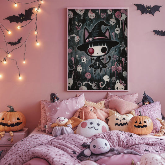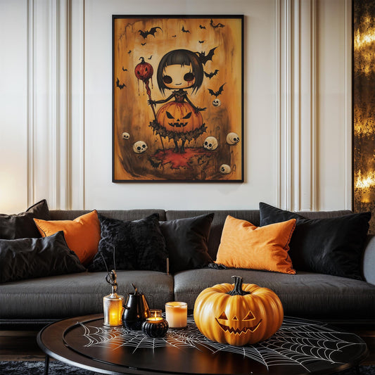 Kawaii Halloween Poster Print Bloodthirsty Pumpkin Witch Japanese Spooky Creepy Cute Gothic Horror Yami Kawaii Gurokawa
