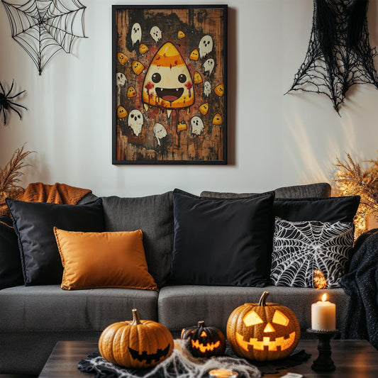 Kawaii Halloween Poster Print Candy Corn Trickster with Blood Stains Japanese Spooky Creepy Cute Gothic Horror Yami Kawaii Gurokawa