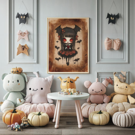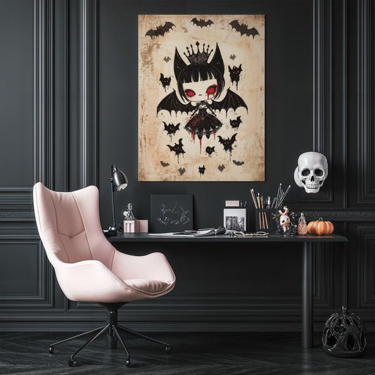 Kawaii Halloween Poster Print Bat Queen of the Underworld Japanese Spooky Creepy Cute Gothic Horror Yami Kawaii Gurokawa