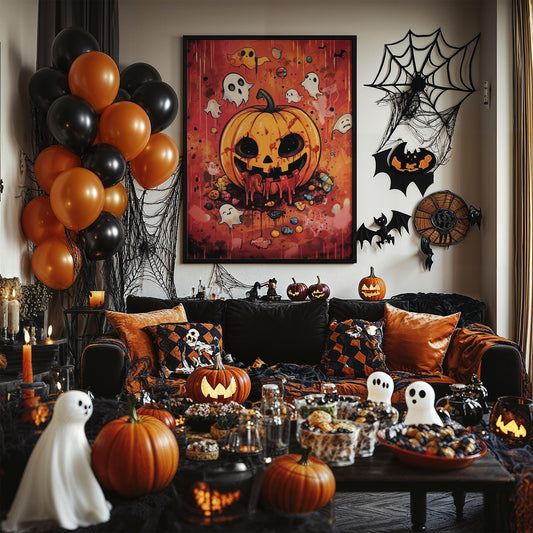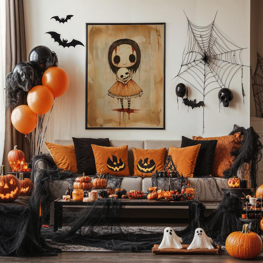 Kawaii Halloween Poster Print Pumpkin with Haunted Smile Spooky Creepy Cute Gothic Horror Yami Kawaii Gurokawa