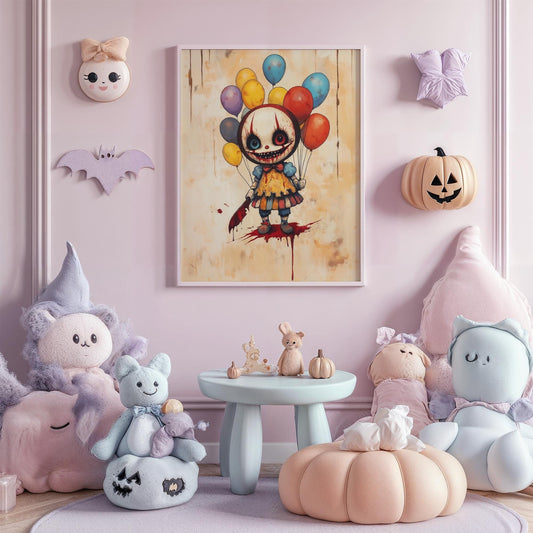 Kawaii Halloween Poster Print Clown with Bloodstained Knife Japanese Spooky Creepy Cute Gothic Horror Yami Kawaii Gurokawa