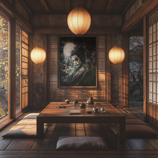 Japanese Theater Halloween Art Moonlit Kabuki Spooky Kowai Anime Poster Print Wall Decor