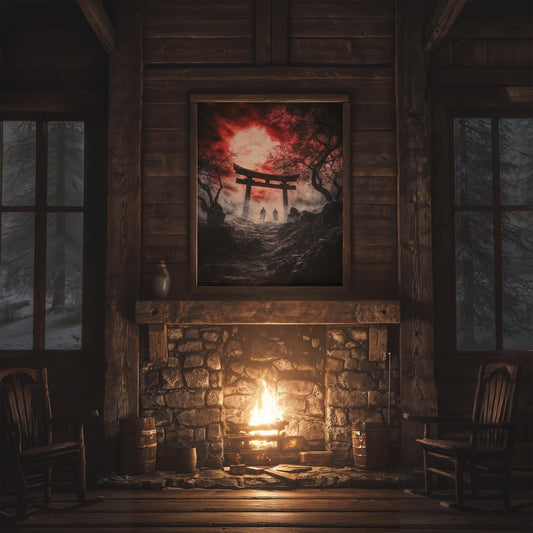 Japanese Haunted Gate Halloween Art Torii of Shadows Spooky Kowai Anime Poster Print Wall Decor