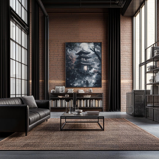 Japanese Ghostly Halloween Art Haunted Pagoda Spooky Kowai Anime Poster Print Wall Decor