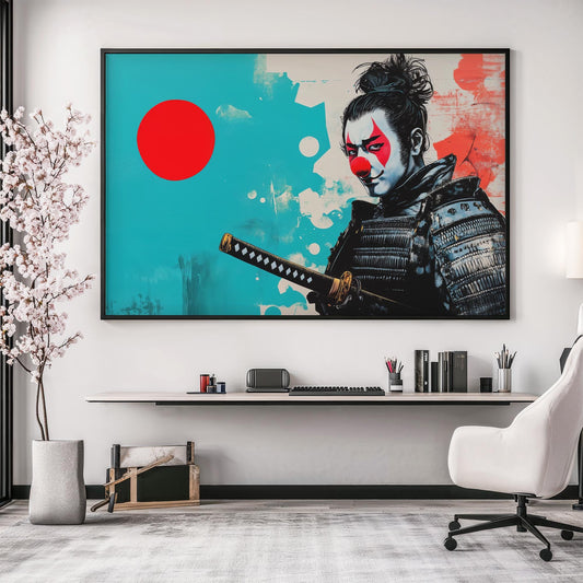 Japanese Samurai Pop Art Print, Turquoise Red Wall Decor, Urban Warrior Portrait, Street Art Style Gaming Room Gift, Modern Graffiti Artwork