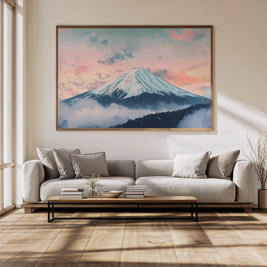 Silent Snowfall at Mt. Fuji Poster - Japanese Winter Wall Art Ukiyo-e Inspired - Minimalist Landscape Print - Perfect Gift for Home Decor