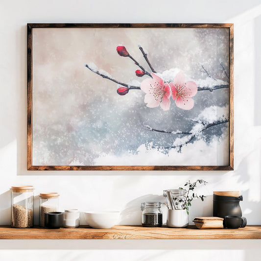 Plum Blossom Breaks the Snow Poster Print - Japanese Winter Art - Watercolor Style Wall Decor - Gift for Art Lovers and Nature Enthusiasts