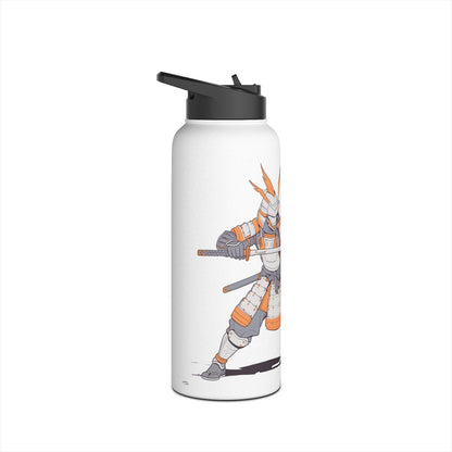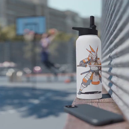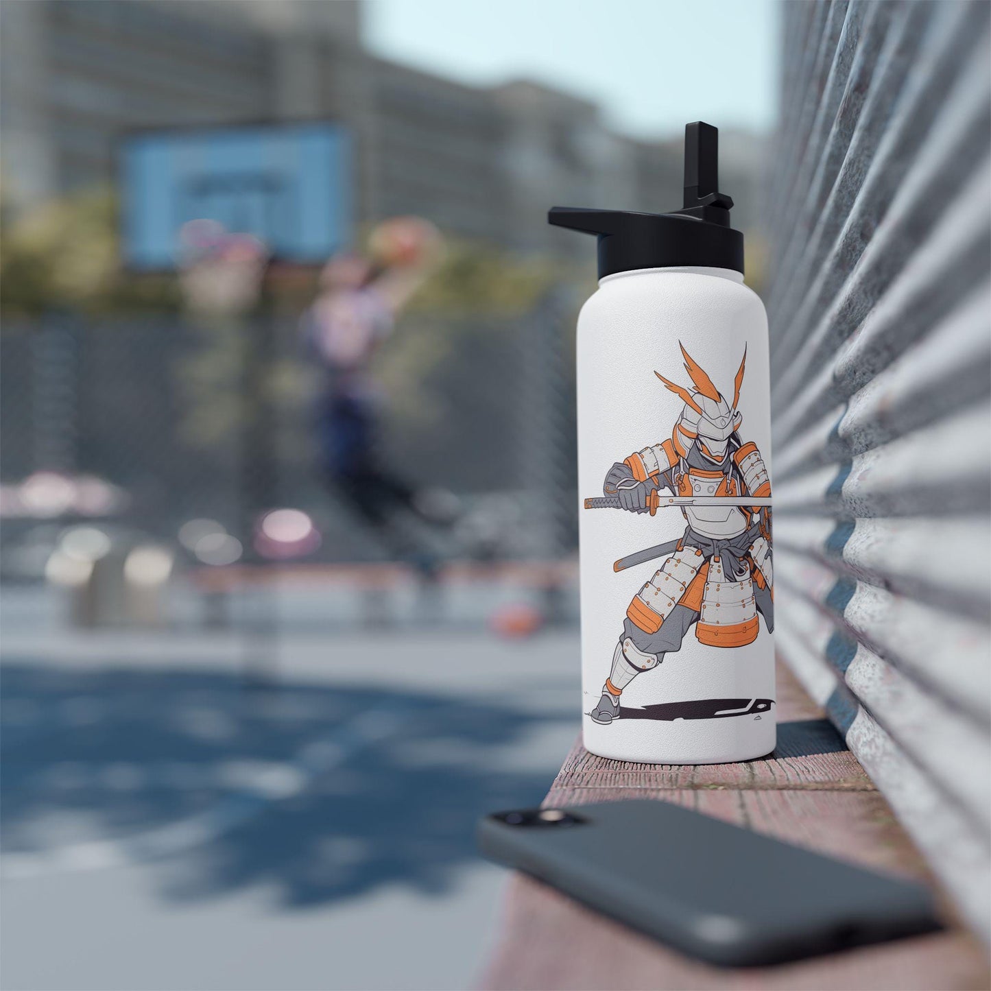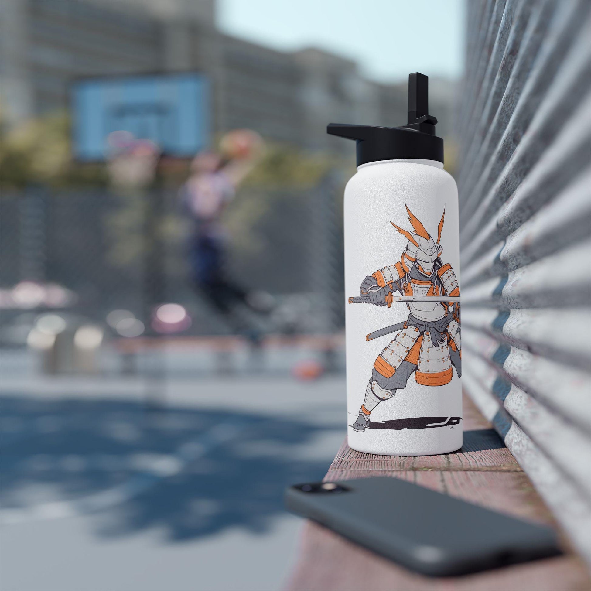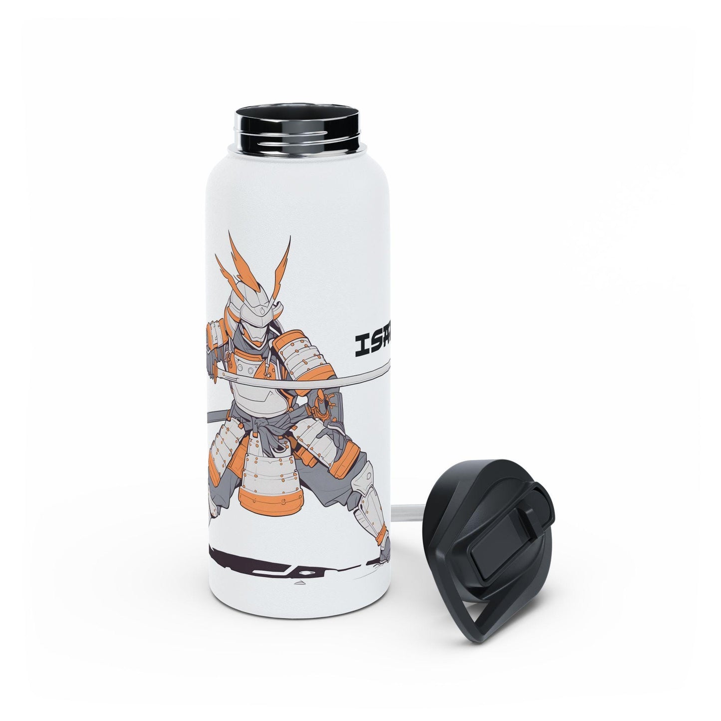 Customizable Samurai Hero Water Bottle Anime Warrior Design in Hand-Drawn Style Insulated with Straw
