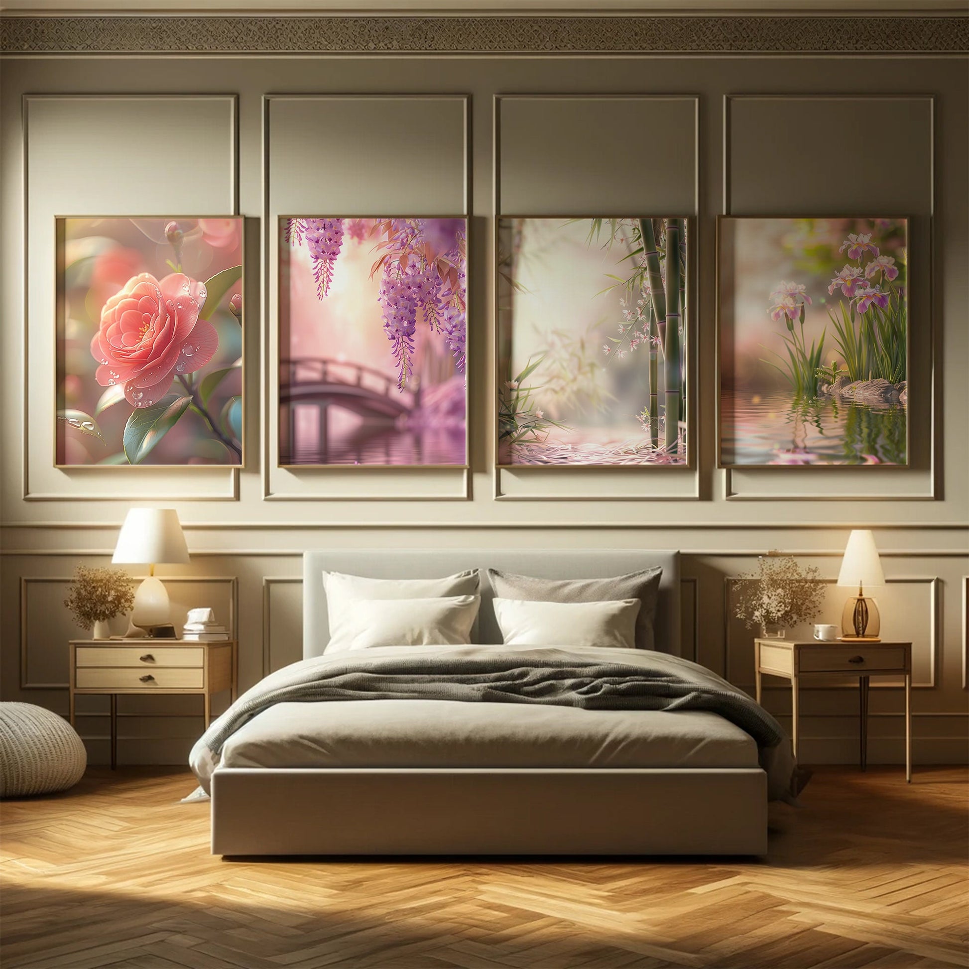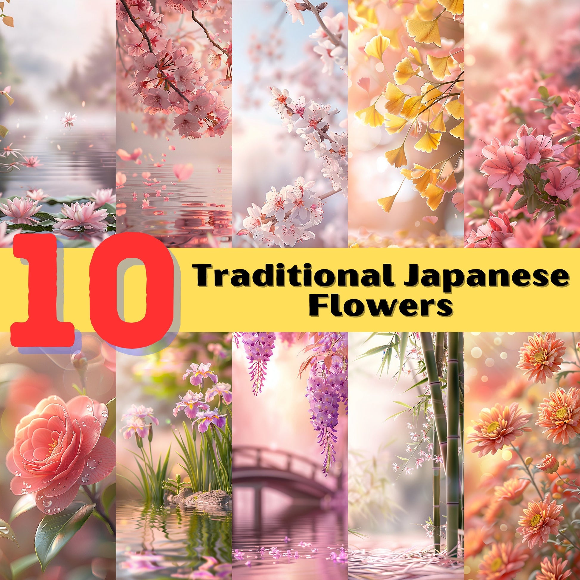 Discover the tranquil beauty of Japan with this exclusive collection of digital floral paintings. Each image in this set of 10 showcases a traditional Japanese flower, from the iconic cherry blossoms to the elegant wisteria and serene lotus. These images are rendered in stunning detail and vibrant colors, perfect for adding a touch of peaceful elegance to your home or office. The digital download format makes it easy to create large prints for decorating a space or to use as beautiful, thoughtful gifts.